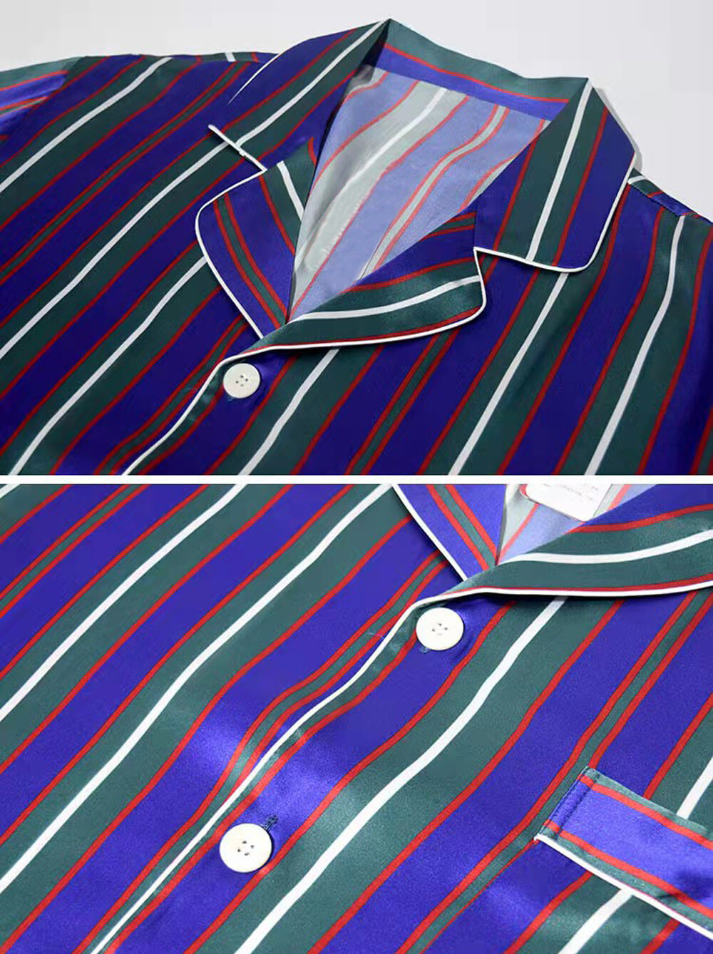 Men's 100% Mulberry Silk Striped Pajamas Set Long Sleeves Silk Sleepwear S M L